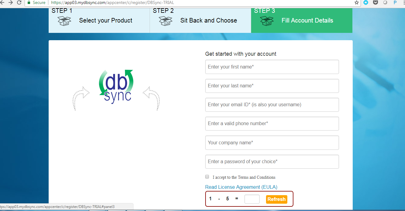 Step 8 - Back to Step 3 on DBSyn.com and Fill the detail and register for the Account.